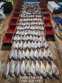 #여수오션스타 #타이라바전문선사 #매일출항#개인어탐기 #꾸준한상위권조황 #타이라바왕#금요일기상좋습니다 #금요일모집합니다☆여수오션스타 1월6일 참돔타이라바 조황기상이 생각보다 좋지 않았지만 그래도 다들 손맛 보시고 철수했습니다최근 기상이 너무 안좋아요 ㅠㅠ또 수목 이틀간 휴항하고 금요일부터 출항합니다여건만 맞으면 200수 이상 나오고 있습니다조황 걱정마시고 오시면 됩니다악조건에도 기본 100수 이상입니다추운날 수고하셨습니다.♡이번주 금요일 타이라바 모집중■예약문의010 7381 5882[밴드 초대장]오션스타대장님이 당신을 '☆여수오션스타피싱☆쭈꾸미낚시 문어낚시 갑오징어...' 밴드에 초대합니다.초대를 수락하고 우리 모임에 함께해요!https://band.us/n/a5a4A9o172a63 ===== 여수 오션스타 예약안내 ======안녕하세요! 여수 오션스타입니다. 먼길 찾아주시는 조사님들을 위해 항상 최선을 다하겠습니다. ■ 예약문의 : 010-7381-5882■ 오시는길 : 전남 여수시 어항단지로 53■ 여수 오션스타 실시간 예약 바로가기 : http://ysoceanstar.sunsang24.com/■ 계좌안내 : 수협 / 2020-4732-1188 / 김혜원